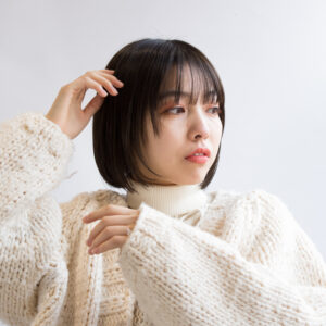プツンと丁寧に切りそろえられたカットラインが一際目を引くボブスタイル。